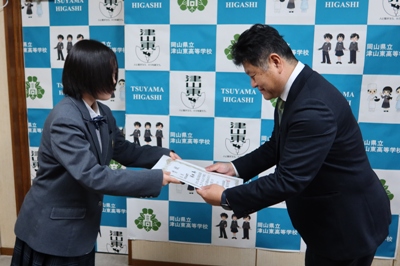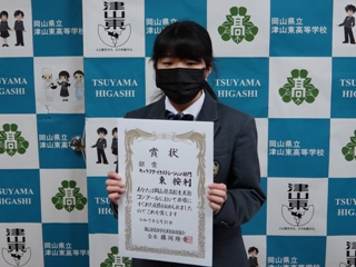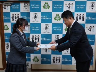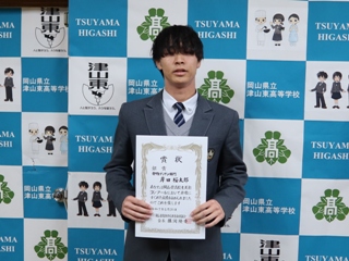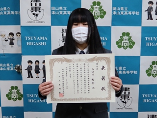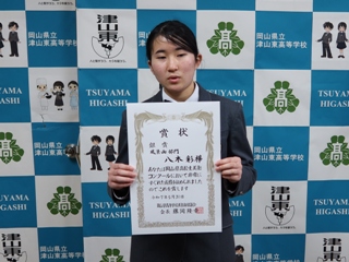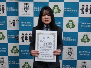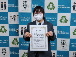 本校では、読書を通して人生を豊かにしていくために、毎年夏に、1・2年生が読書感想文に取り組んでいます。校内選考を経て、毎年、美作地区読後感想文コンクールに応募してきました。今年度は、応募した生徒のうち、3名が入賞し、表彰を受けました。