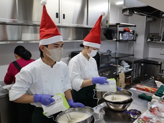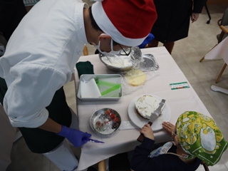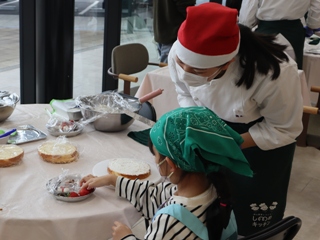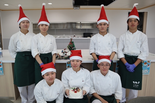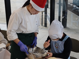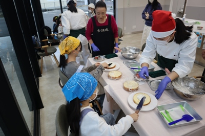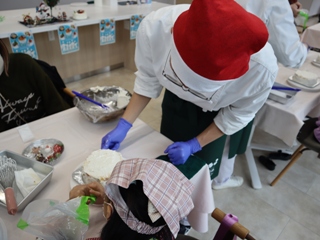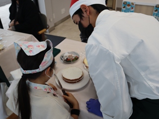 12月13日(土)、本校食物実践室にて、津山市立東小学校の児童と保護者の皆さんをお招きし、「クリスマス交流会」を開催しました。