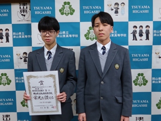 12月11日(木)、津山高校図書館にて、第15回美作地区高校生読後感想文コンクール(岡山県高等学校教育研究会学校図書館部門美作支部主催)の表彰式が行われました。