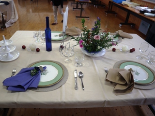 その後、5つのグループに分かれ花を選び、その花から皆でイメージを膨らませ、テーマを決めてテーブルを演出していきました。