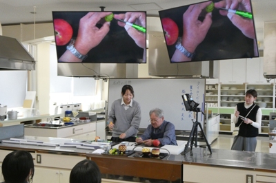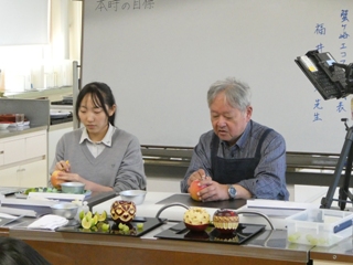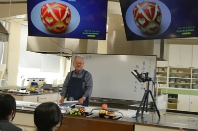 10月29日(水)に食物調理科3年生を対象に蟹ヶ峪エコファーム代表福井利夫先生からタイの伝統工芸であるフルーツカービングを教えていただきました。