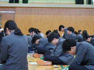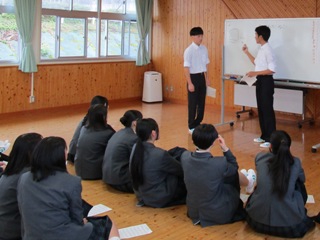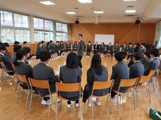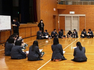 3月19日(木)、今年度卒業した6名をお招きして、卒業生の経験やアドバイスを聞くことで、生徒が自ら進路意識を高め学習意欲を向上させることを目的に普通科1・2年生の受験報告会を行いました。