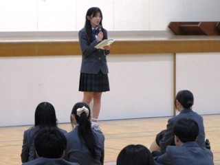 また、今年大きな変更を計画している学校祭をはじめ、学校のさまざまな取組について、「主役はみなさん。新たな伝統を自分たちで創り上げてほしい。先生たちははしごをかけたり、時には壁となったりして力になってくれる。何かを成し遂げようとすると壁もある。生き生きと学校生活を送れることを願っています。」と結ばれました。