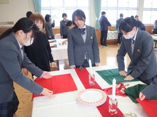 生徒たちは自分たちのテーマに合わせた雰囲気を演出できるよう、グループで意見を出し合い、楽しそうに生き生きと取り組みました。