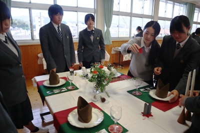 11月5日(水)、食物調理科3年生が食空間コーディネート協会から小池佳子先生と最所養子先生をお招きしてテーブルコーディネイトを学びました。