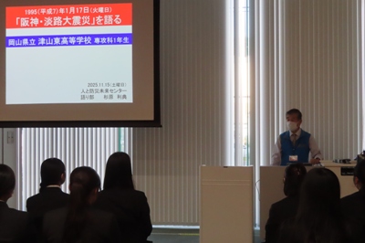 語り部の方は当時、高層マンションにお住まいで被災され、写真を交えお話していただきました。