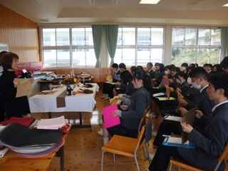 さらに、専門科に即した内容として、食物調理科1年生には栄養士の業務に関する講話、看護科1年生には保健師の業務に関する講話を実施していただきました。
