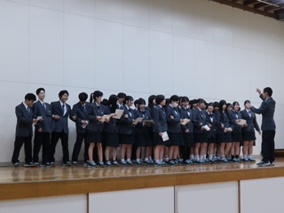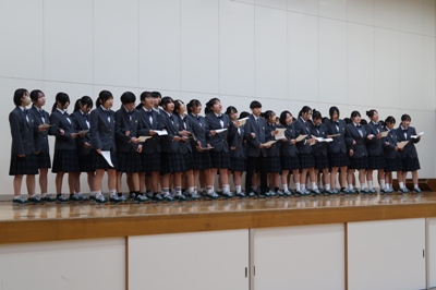 式の最後には、転退任された先生方も一緒に全員で校歌を斉唱し、お別れの時間を惜しみました。