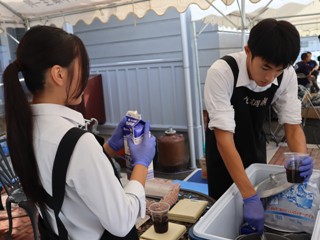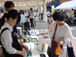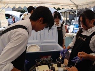 10月5日(日)に、第30回津山・城西まるごと博物館フェア2025が作州民芸館周辺(津山市西近町)で開催されました。本校の調理研究同好会では、「珈琲饅頭」と「とろりんカフェオレ」を販売しました。