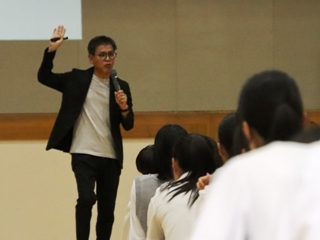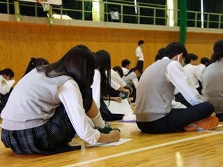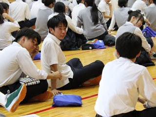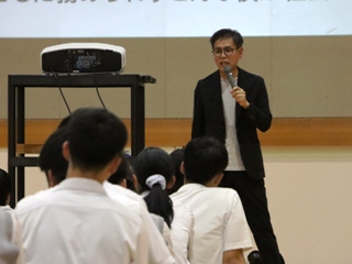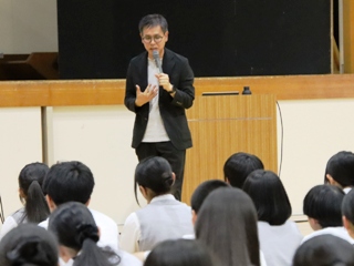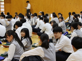 生徒たちは、田口先生からの問いかけに対し、周りの生徒と話し合ったり、真剣にメモを取ったりしながら講演を聞いていました。