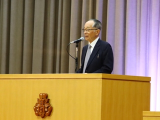 初めに大山同窓会長から、歓迎の言葉をいただき、新入会員の代表者に入会記念品として、PTAと合同で卒業証書カバーが贈られました。