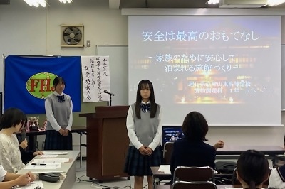 家庭基礎の授業で災害食を学び、家族のために何かできないかと考え「安心して泊まれる旅館づくり」というテーマでホームプロジェクトに取り組みました。