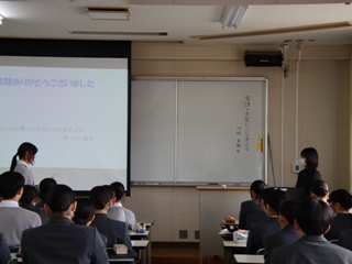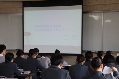 生徒たちから、「看護臨地実習での経験が今回の話とつながった。」、「これまで疾患ばかりに目が向いていたが、その人を見ることの大切さを感じた。」といった声があり、これまでの学びを振り返る機会になりました。