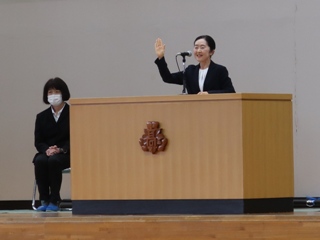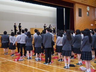 式の最後には、転退任された先生方も一緒に全員で校歌を斉唱し、お別れの時間を惜しみました。