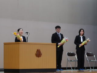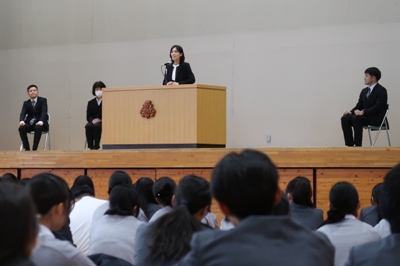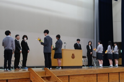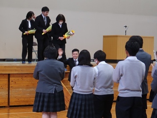 生徒を代表して、生徒会長からはこれまでのご指導に対する感謝の言葉が贈られ、色鮮やかな花束を手渡しました。