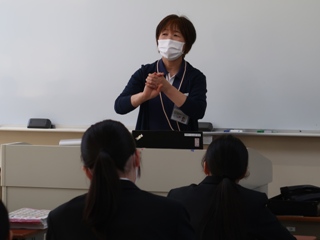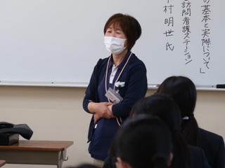 最後に、生徒代表が、「在宅看護はまだ経験したことがありませんが、講義で学んだことを実習に生かしたいと前向きな気持ちになりました。」とお礼を述べました。