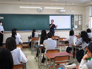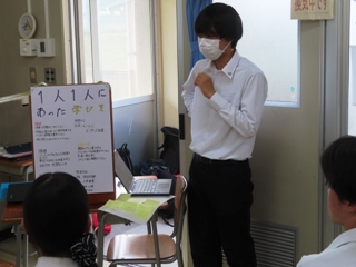 聞き手の生徒は、素朴な疑問を投げかけ、質疑応答の後には感想を書いた付箋を手渡し、励まし合いました。