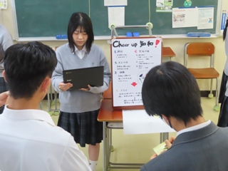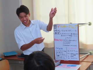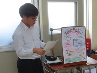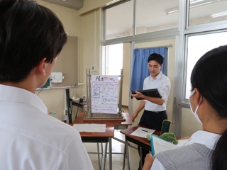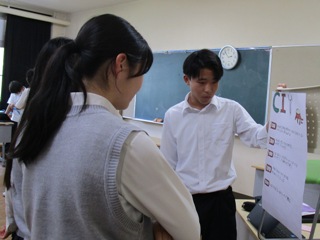各グループは内容をまとめた1枚のポスターを示しながら説明を行いました。用意した原稿を確認しながら丁寧に伝えたり、ジェスチャーを交えながら生き生きと伝えたりする姿が印象的でした。