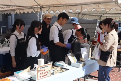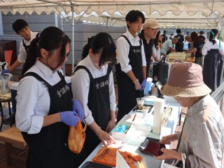 10月5日(日)に、第30回津山・城西まるごと博物館フェア2025が作州民芸館周辺(津山市西近町)で開催されました。本校の調理研究同好会では、「珈琲饅頭」と「とろりんカフェオレ」を販売しました。