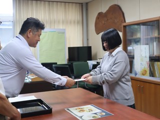 10月8日(水)、全国大会に出場する食物調理科3年生に激励金贈呈式を行いました。