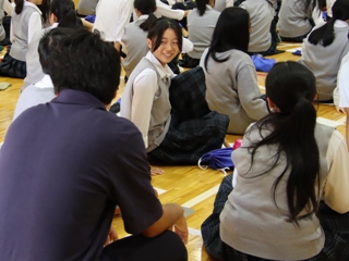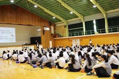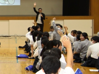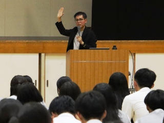 生徒たちは、田口先生からの問いかけに対し、周りの生徒と話し合ったり、真剣にメモを取ったりしながら講演を聞いていました。