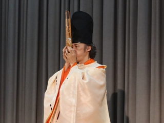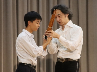 生徒による古楽器体験や東儀さんへの質問コーナーもあり、会場は大いに盛り上がりました。