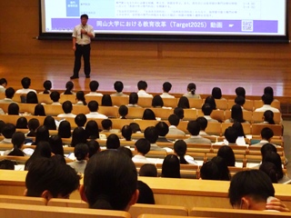 午前中は、岡山大学の高大接続部門の方から、大学の概要についてご説明いただきました。岡山大学の特色や強み、入試制度、求める学生像など、幅広い内容をお話しいただきました。