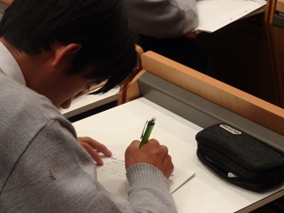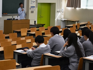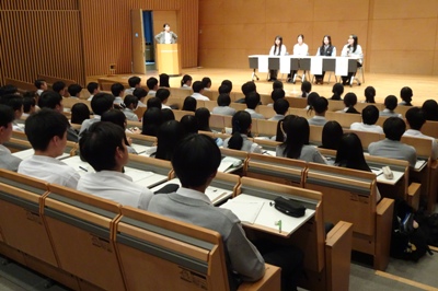 高校時代の勉強方法や進路選択、大学生活についてなど、普段はなかなか聞くことのできない貴重なお話を、生徒たちはメモを取りながら真剣に聞いていました。
