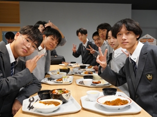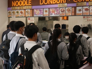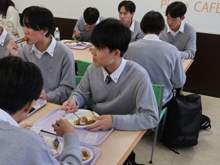 昼休みには、多くの生徒がキャンパス内にある3つの学食で昼食をとりました。カレーライスやチキン南蛮など、岡山大学ならではの学食メニューを楽しむ姿が見られました。
