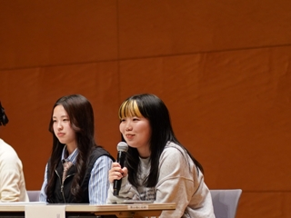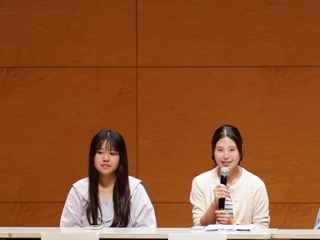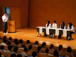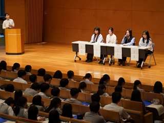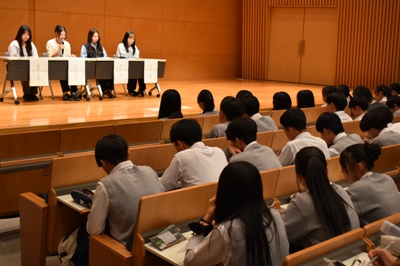 懇談会では、生徒たちが事前に提出した質問に卒業生が答える形式で進行されました。