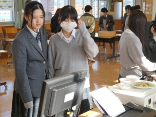「ビタミンが不足している」「糖質が多すぎる」といった指摘をSATシステムの画面で確認しながら、グループ内で話し合い、組み合わせを工夫していきました。献立の組み合わせによって栄養価が大きく変わることを、目に見える形で学ぶことができました。