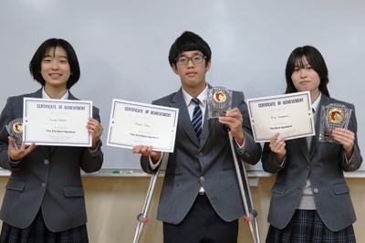 今回はコンテストということで順位を決定しましたが、普通科2年生のみなさん一人一人のスピーチはすべて素晴らしかったです。この経験を活かして楽しく英語を学んでいきましょう!