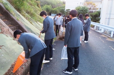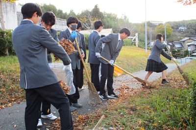 普通科 クリーン作戦(普通科1年) 2025年11月21日 tuhigasi01 11月21日(金)、津山東高校と学校周辺の環境美化を目的として、普通科1年生で清掃活動を行いました。落ち葉を集めたり、普段はなかなか気付かないごみを回収したり、日常の清掃活動だけではカバーしきれない範囲を中心に行いました。 生徒たちは、真剣に活動しながらも、楽しそうな笑い声が聞こえてきたり、協力して作業を行う姿があちこちで見られたり、短い時間ではありましたが、とても充実した活動となりました。