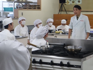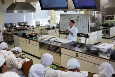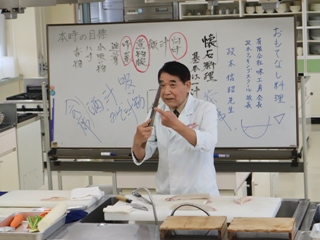 11月26日(水)、食物調理科3年生が、「懐石料理から学ぶ和食のおもてなし」と題して有限会社味工房会長、政木クッキングスクール校長の政木信昭先生から、調理師としておもてなしの方法と社会人としての心構えについて教えていただきました。