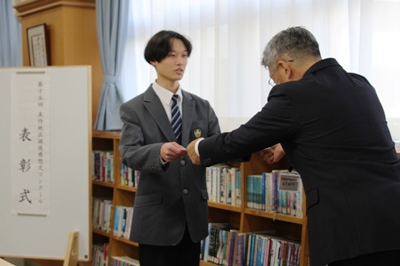 12月11日(木)、津山高校図書館にて、第15回美作地区高校生読後感想文コンクール(岡山県高等学校教育研究会学校図書館部門美作支部主催)の表彰式が行われました。