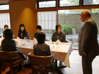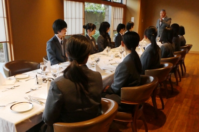 初めてホテルでのフルコースを体験した生徒も多く、最初は緊張していましたが、竹内先生がリラックスした雰囲気を作ってくださったので、安心して食事を進めることができました。