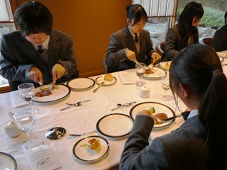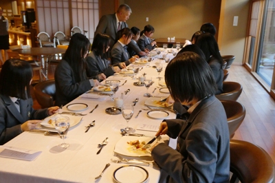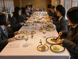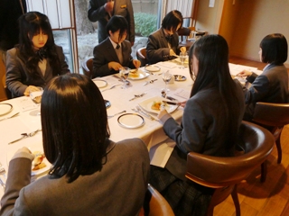 生徒たちは食事を味わいながらもフォークやナイフの扱い方にも慣れていき、竹内先生から全員が褒めていただきました。