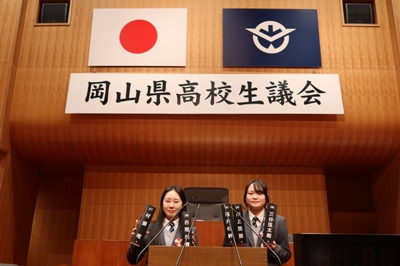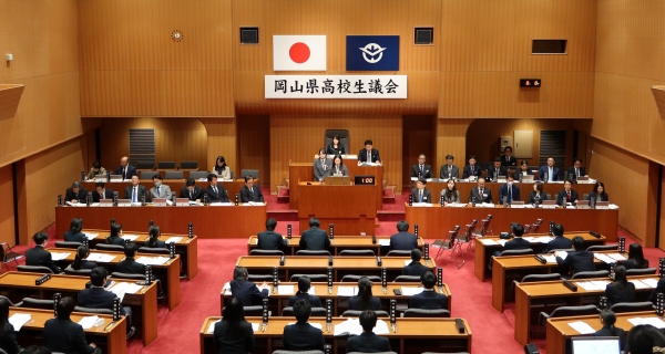 12月15日(月)、岡山県議会本会議場(岡山市北区)にて実施された令和7年度岡山県高校生議会に本校から生徒会執行部が参加しました。