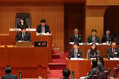 実際に議員席に座り、また演壇にて質問をするという経験はとても貴重であり、生徒たちは、とても緊張していましたが、しっかりと想いを伝えることができました。