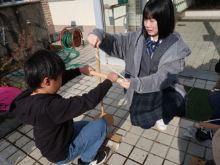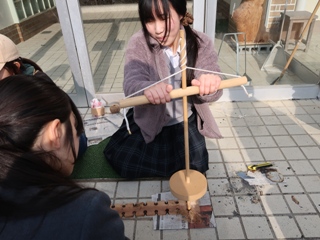 生徒にとって初めての火起こし体験でしたが、みるみる上達し、子どもたちのサポートができるまでになりました。