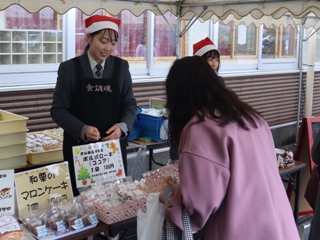 調理研究同好会も出店し、ご好評をいただいている本校自慢のパウンドケーキをはじめ、限定商品の和栗のケーキなど、計6品を販売しました。