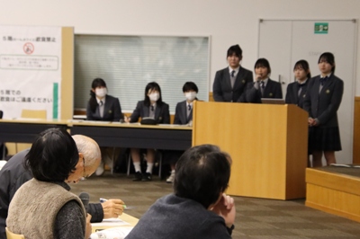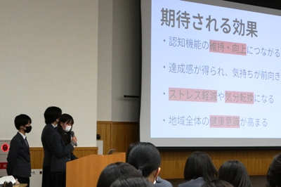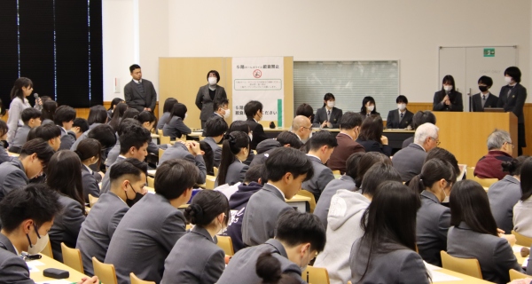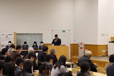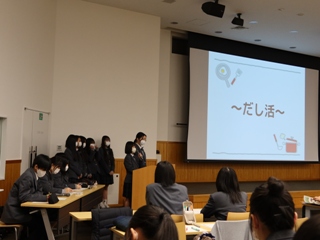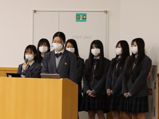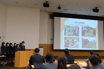 12月23日(火)、美作大学100周年記念ホール(津山市北園)にて、2年生の8つの班が行学の発表を行いました。(食物調理科1班、看護科1班、普通科地域PJ6班)