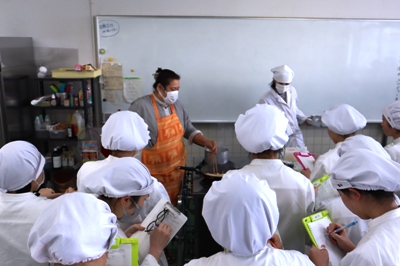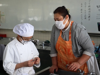 生徒たちは、見たことのない食材や普段使い慣れていない調味料に苦戦しながらも多国籍料理を学ぶことにワクワクした様子で目を輝かせながら取り組みました。