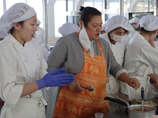 2月9日(月)、「ユワデーのタイ料理」(美咲町)の店主である清水ユワディー先生に、食物調理科3年生がタイ料理を教えていただきました。