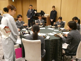午後からはTHE THOUSAND KYOTO(京都市下京区)において日本料理のテーブルマナー講習会を受けました。日本料理に関する知識とテーブルマナーについて約2時間にわたりご指導いただきました。