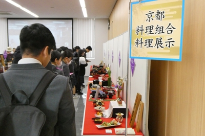 当日は、京の食文化ミュージアムあじわい館(京都市下京区)にて第119回京料理展示大会(京都料理組合主催)が開催され、日本料理の献立構成や調理法について学びました。