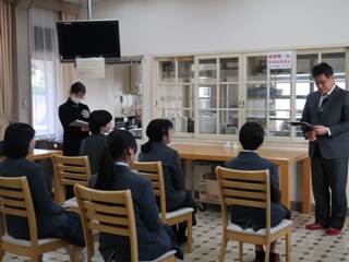 その他, 学校行事 みやがわ寮入寮式 2026年4月8日 tuhigasi01 4月8日(水)の入学式後に、みやがわ寮の入寮式が行われました。入寮許可をいただき、山本校長からの式辞をいただきました。入寮生挨拶は、看護科の生徒が挨拶をしました。 1年生も最初は緊張した面持ちでしたが「オープンスクールで会ったよね。」と上級生から声をかけてもらったり、搬入の手伝いをしてもらったりとするうちに、笑顔がこぼれ「先輩がやさしくて良かった。」、「いろいろな科の人と話せるのがうれしい。」と、同室の上級生にアドバイスをもらいながら、準備を進めている風景が印象的でした。