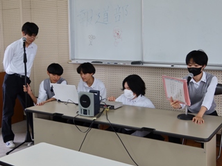 報道部では、お昼の放送を通して、校内のニュースを発信したりリクエスト曲を流したりしています。また、東雲祭の時には、アナウンスを通して、行事の成功のために力を尽くしています。ぜひ、一緒に活動してみませんか。