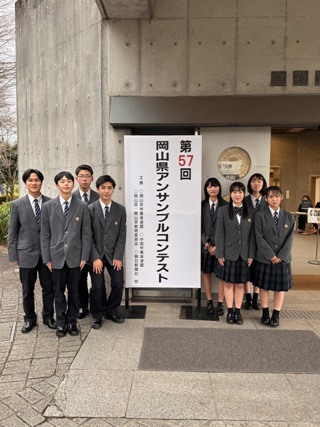12月21日に倉敷市芸文館にて行われた第57回岡山県アンサンブルコンテストで、金管八重奏チームが「楽市楽座 第2番~たけの抄~」(田村修平作曲)を演奏し、銀賞を受賞しました。