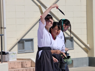 当日は冷たい風の中でしたが、咲き始めた桜の下、8名で息を合わせたパフォーマンスを行い、たくさんの観客から拍手をいただくことができました。